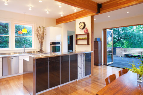 What started as a small kitchen remodel blossomed into a whole house, 3-phased renovation. The first step was addressing the seven shades of paint color on the exterior. With gutsy clients recently transplanted from the UK, we went for a stealthy black exterior that hints to the rest of the house is anything but traditional. By combining three smaller rooms on the back side of the house into one and popping out an exterior wall, we were able to create an expansive kitchen and dining space with fold-away doors that open to the back deck for alfresco dining. The final phase was transforming a cramped attic space into an inviting, light-filled en suite maste. Our design approach honored the history and architectural details of the space while pushing boundaries and challenging the rules.